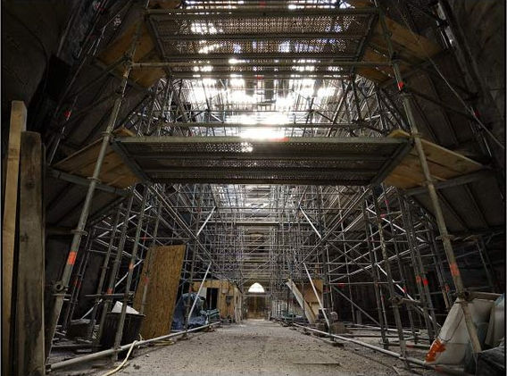 Plus qu’une restauration, la Halle aux Bleds a subi une véritable recréation lors de sa récente réhabilitation. En témoignent les vitraux contemporains et la rose monumentale installés en 2007.